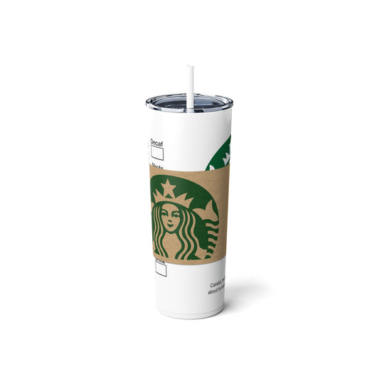 Coffee Inspired Skinny Steel Tumbler with Straw, 20oz